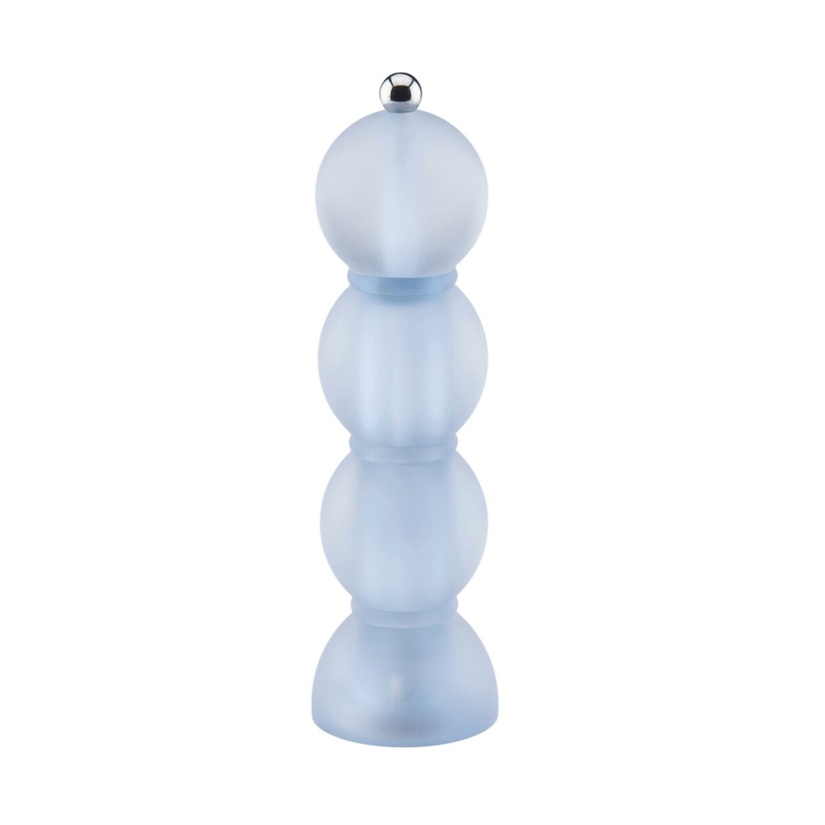 Frosty Bob Tuz veya Biber Değirmeni, çarpıcı tasarımı ve pratikliği kompakt bir boyutta birleştirir. Dayanıklı buzlu akrilikten üretilen yarı saydam yüzeyi, imzamız olan bobin şeklini korurken modern bir dokunuş katıyor. 24 cm boyunda olan bu değirmen, hem işlevsel bir mutfak aleti hem de günlük kullanım veya özel günler için mükemmel olan şık bir masa üstü aksesuarıdır. Seramik bir mekanizma kullanarak, değirmenin etkinleştirilmesi için saat yönünde bir hareket gerekir. Değirmenler, Kaya Tuzu (Kuru Tuz Kristalleri) veya Karabiber öğütmek için kullanılabilir. Deniz tuzu, ıslak tuz veya kurutulmuş ıslak tuz veya pembe karabiber için kullanılmamalıdır. Uzun süreli doğrudan güneş ışığında bırakmayın.