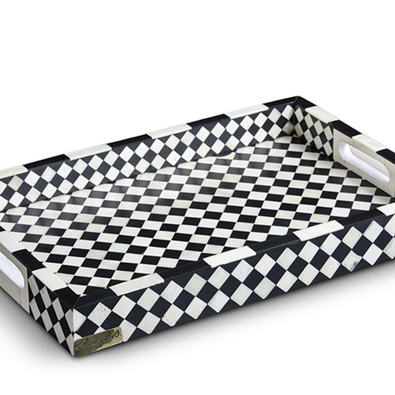 Black and white mosaic patterned tray with handle(small)