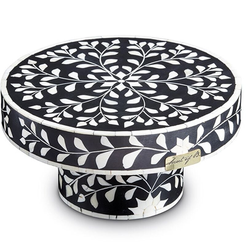 Black floral pattern mother-of-pearl inlay cake stand