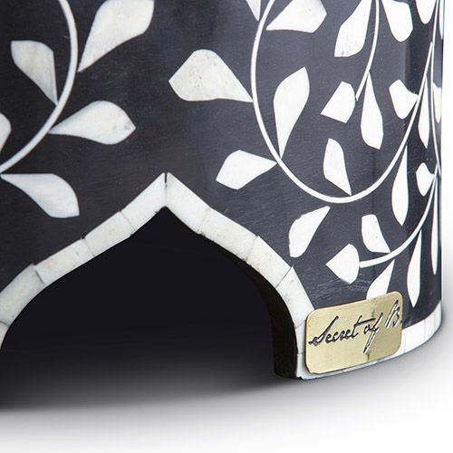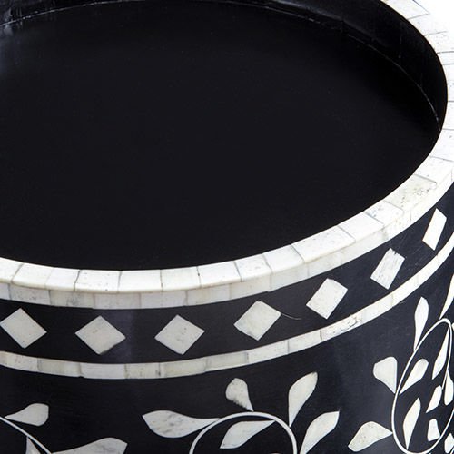Black floral-patterned mother-of-pearl inlay cake stand