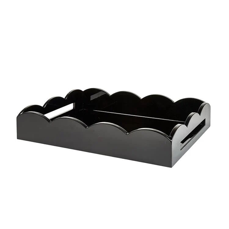 Siyah Orta Boy Lacquered Dalgalı Kenarlı Servis Lake Servis Tepsisi
