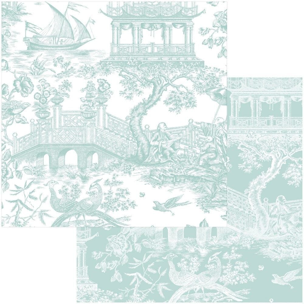 Chinoiserie Toile Reversible Gift Wrapping Paper in Robin's Egg 30'' x 8' Roll