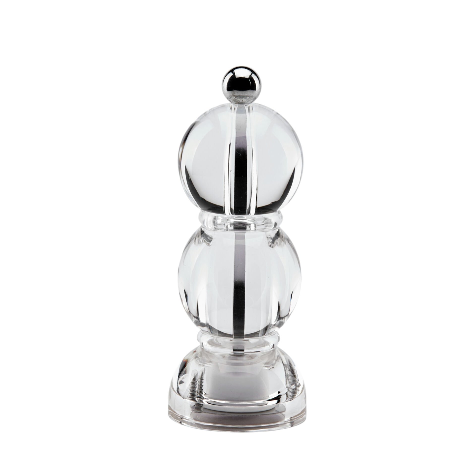 Mini Clear Icy Bob Tuz veya Karabiber Değirmeni, kompakt boyutuyla çarpıcı tasarım ve pratikliği bir araya getiriyor. Dayanıklı akrilikten üretilen bu değirmen, içindeki tuz veya karabiberi ortaya çıkaran şeffaf bir tasarıma sahip. İmzalı bobin şeklimiz, en küçük masalara bile zarafet katıyor. 14 cm yüksekliğindeki bu değirmen, hem işlevsel bir mutfak aleti hem de günlük kullanım veya özel günler için mükemmel, şık bir masa aksesuarı. Seramik bir mekanizma kullanan değirmenin etkinleştirilmesi için saat yönünde hareket ettirilmesi gerekir. Değirmenler, Kaya Tuzu (Kuru Tuz Kristalleri) veya Karabiber Taneleri öğütmek için kullanılabilir. Deniz tuzu, ıslak tuz, kurutulmuş ıslak tuz veya pembe karabiber taneleri öğütmek için kullanılmamalıdır. Uzun süre doğrudan güneş ışığına maruz bırakmayınız. 14CM