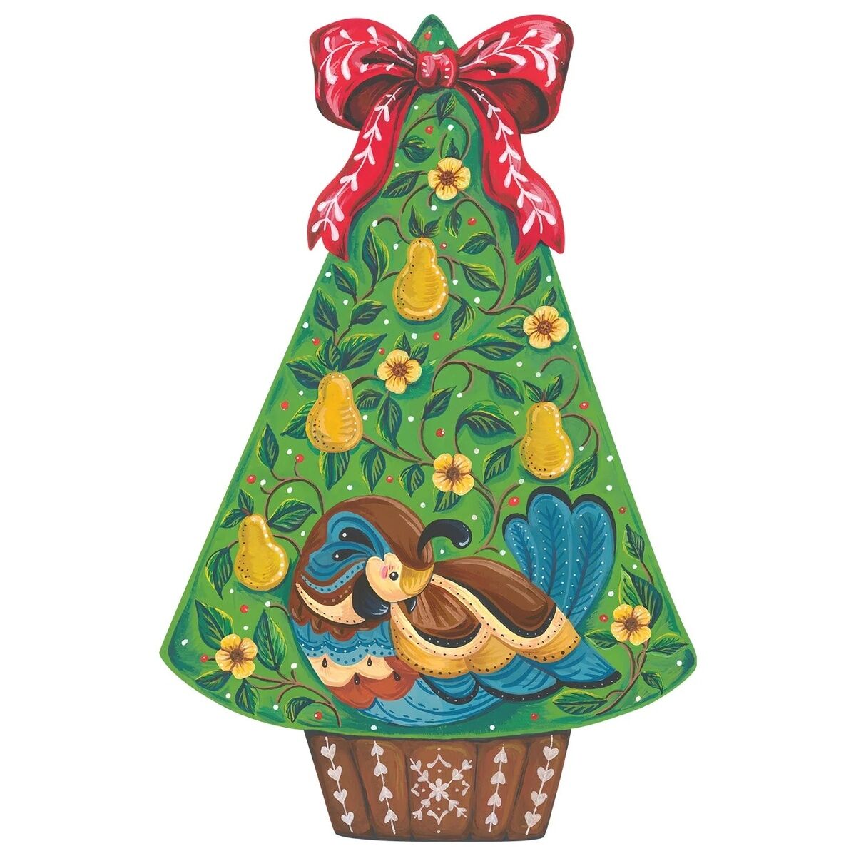 Die-Cut Keklik Yer Matımızla masaya klasik bir Noel şarkısı getirin. Armut ağacına yerleştirilen bu tatlı keklik, tatil masalarınıza şenlikli bir eğlence katmanı daha eklemek için tabağın yanında mükemmeldir ve benzersiz boyutu onu diğer neşeli ve parlak tatil ikramlarıyla eşleştirmek için harika hale getirir.