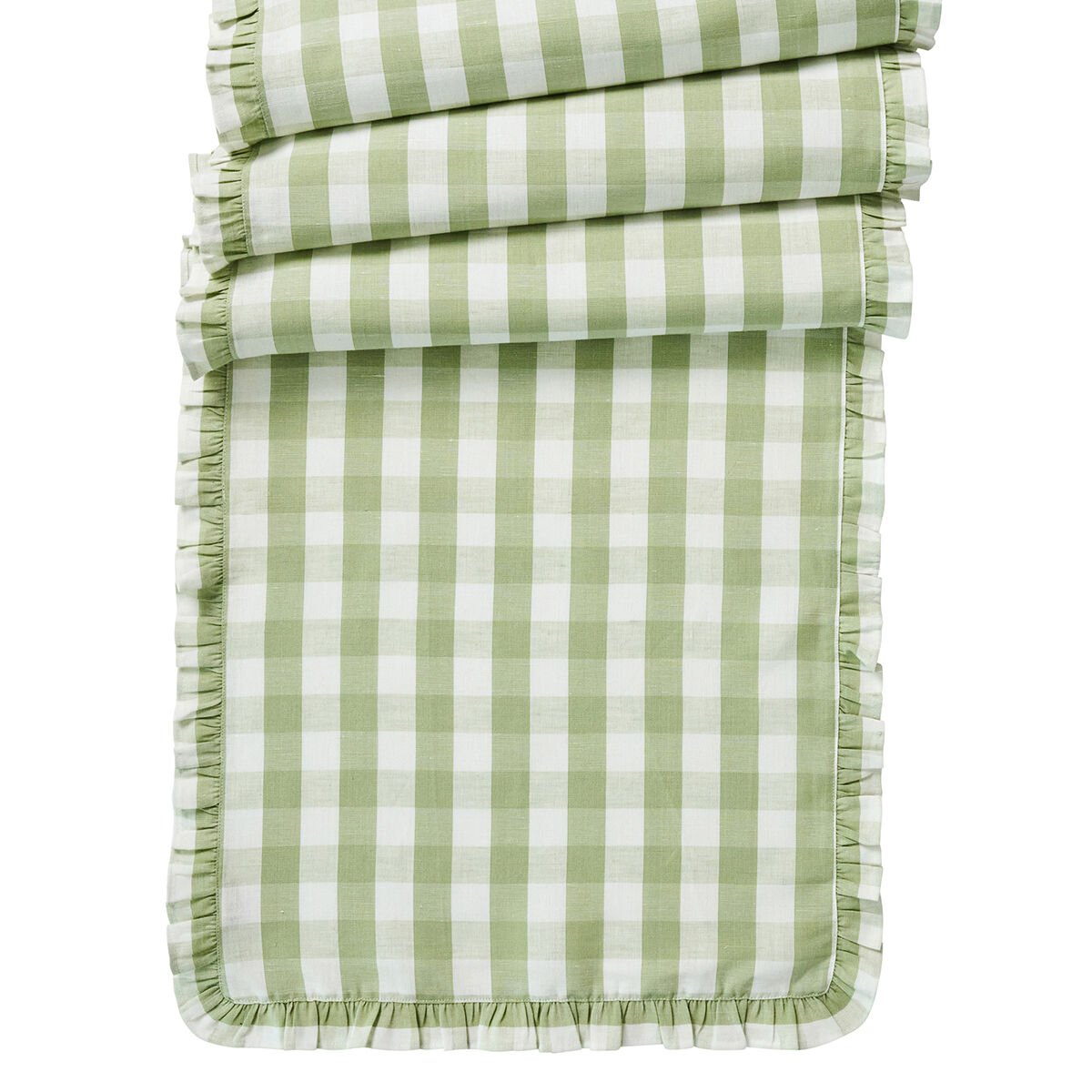 Gingham Ruffle 18'' x 90'' Table Runner - Seagrass