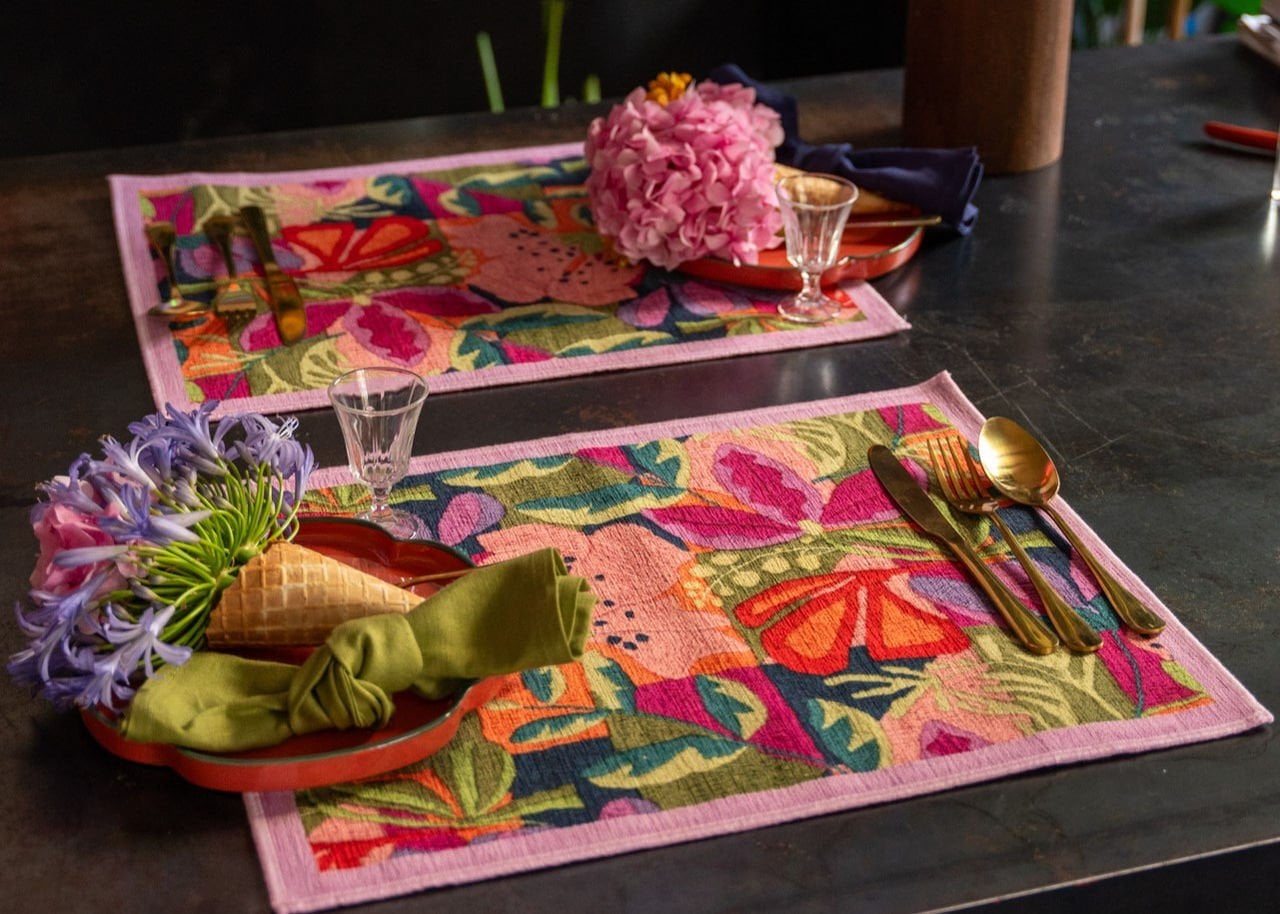 Geri dönüştürülmüş polyester üzerine basılan bu şık tasarım, günlük kullanım için hem dayanıklı hem de dekoratif bir seçenektir. Doğadan ilham alan sanatsal görünümüyle sofralarınıza sıcaklık ve karakter katar.
