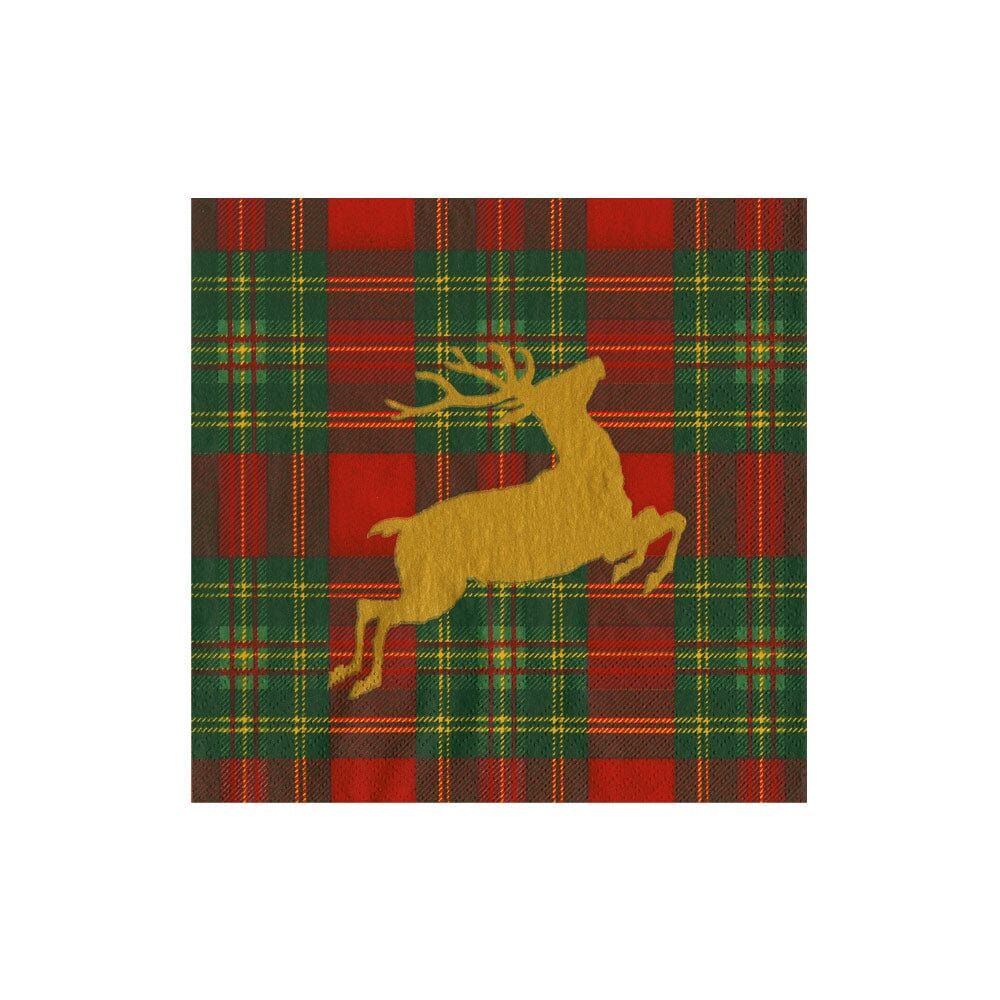 Reindeer Tartan Red Cocktail Napkins - includes 20 Cocktail Napkins