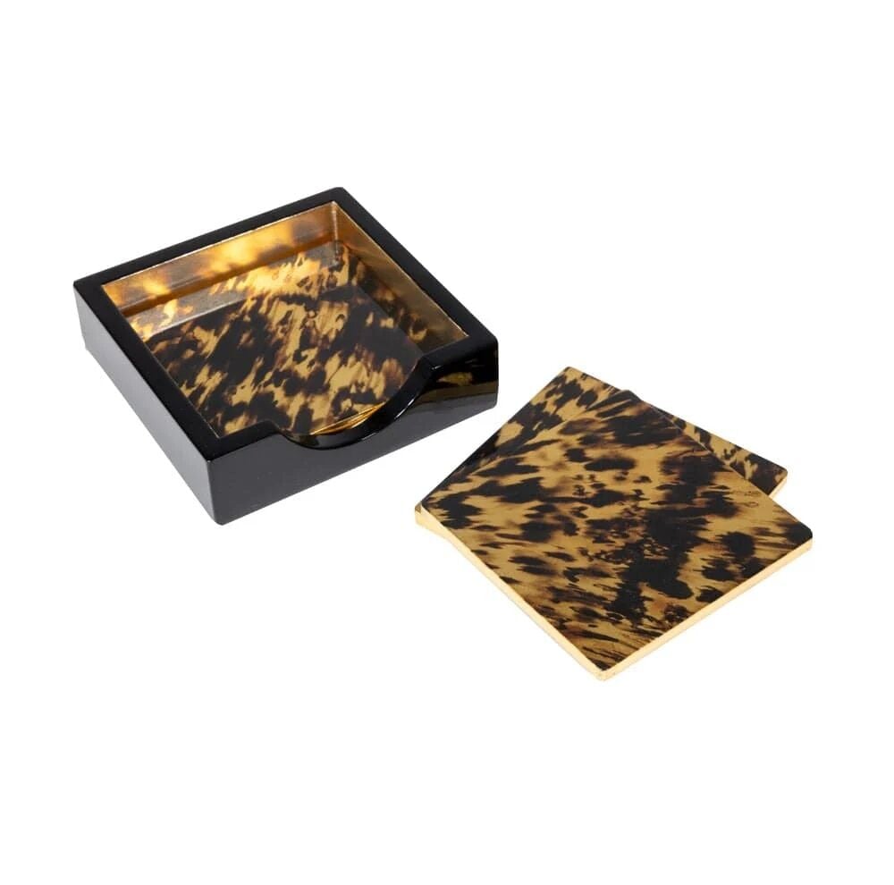 Tortoiseshell Set Of 4 Lacquer Coasters 4'' Diameter