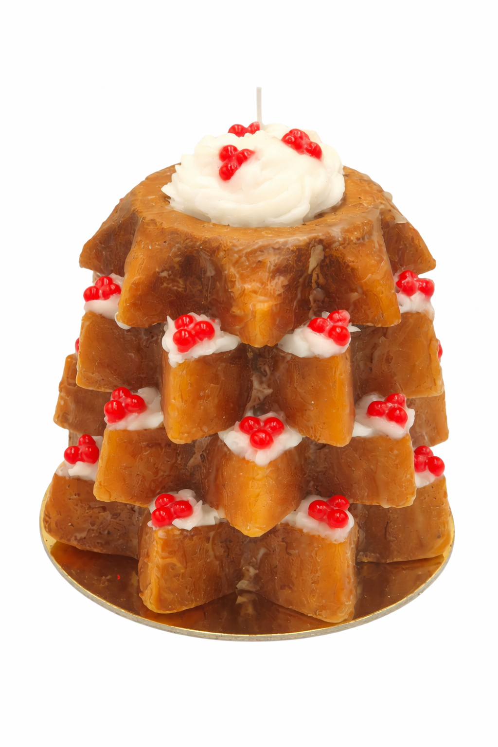 Bu dekoratif mum, İtalyan pandoro kekinden ilham alan yıldız formu ile özellikle yılbaşı ve özel gün dekorasyonlarında öne çıkar. Zarif tasarımı sayesinde hem modern hem de klasik ortamlara kolayca uyum sağlar.